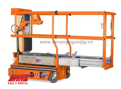 Xe nâng người tầm thấp Nano SP plus là có thể làm việc linh hoạt trên chiều cao 4.5 (m), với không gian sàn thao tác cho phép người mang theo các dụng cụ làm việc dễ dàng.